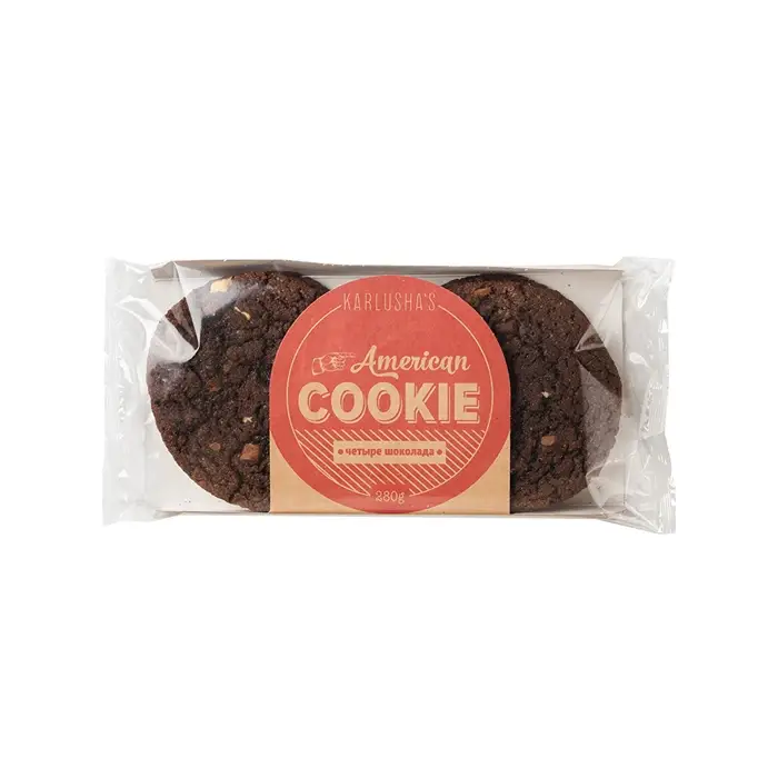 Печенье приготовлено по традиционному американскому рецепту, имеет мягкую рассыпчатую структуру и аромат ванили. Сочетание нескольких видов шоколада: горького темного, молочного с оттенками вареного молока и белого с нотами ванили и сгущенного молока – придает печенью насыщенный и сбалансированный вкус.
