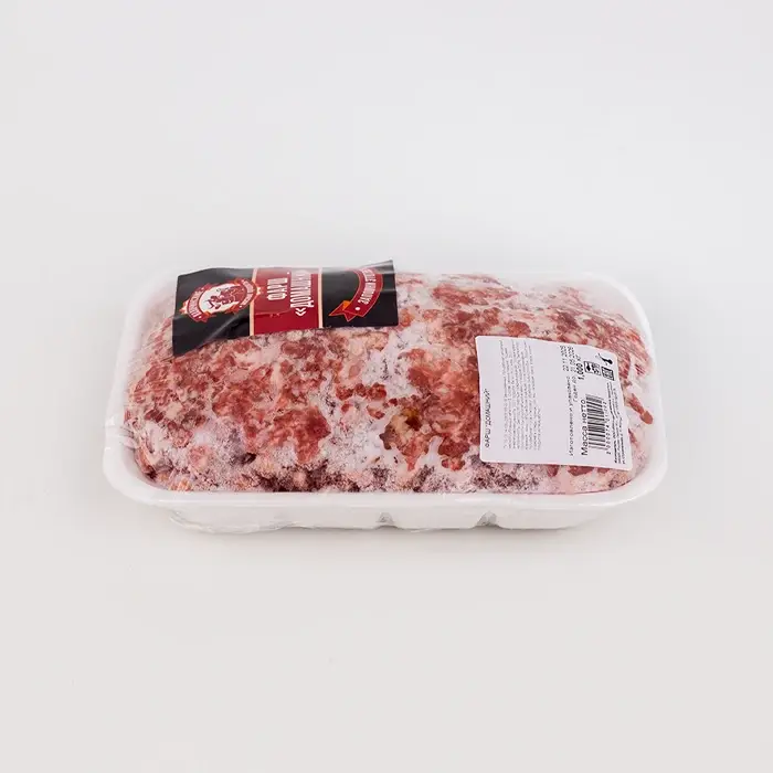 Домашний фарш изготовлен из равных долей свинины и говядины (50 / 50). Фарш имеет насыщенный мясной вкус со сладковатыми нотами, однородную, нежную, умеренно влажную консистенцию без лишней жирности или водянистости.