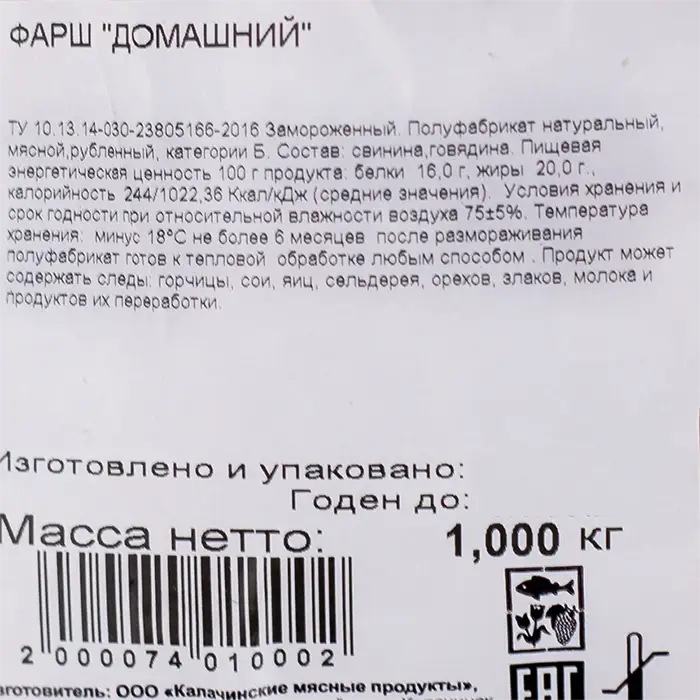Фарш домашний «Калачинские мясные продукты», 1 кг