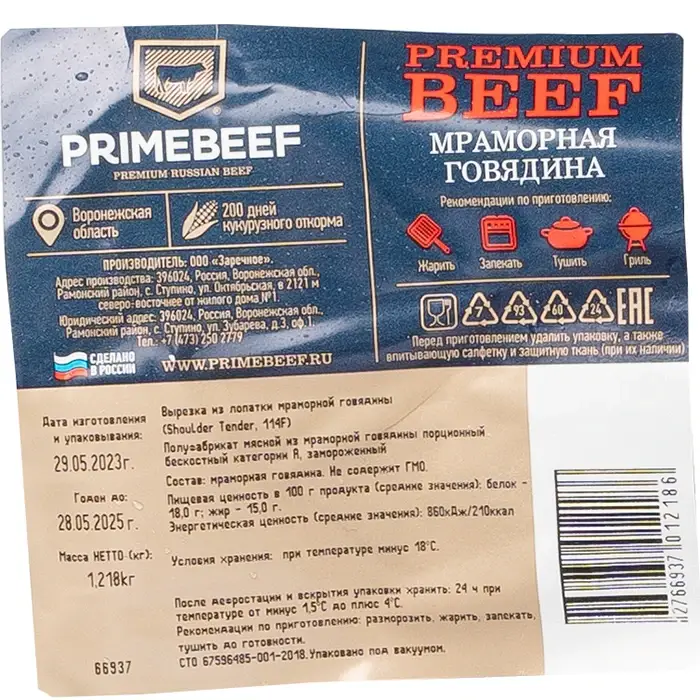 Мраморная говядина, вырезка из лопатки Shoulder Tender 114F «Праймбиф», 1,1–1,5 кг