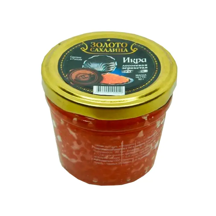Икра лососева зернистая нерки, соль, масло растительное, пищевые добавки: влагоудерживающий агент Е422, консерванты Е200, Е211.