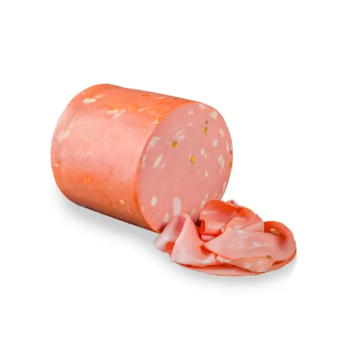 Итальянская вареная колбаса с нежным вкусом без примеси копчения, вкраплениями зеленого перца и фисташек, которые добавляют пикантности.