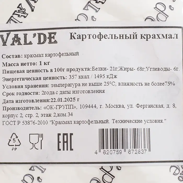 Картофельный крахмал — это безвкусный порошок белого цвета, который получают из картофельных клубней.