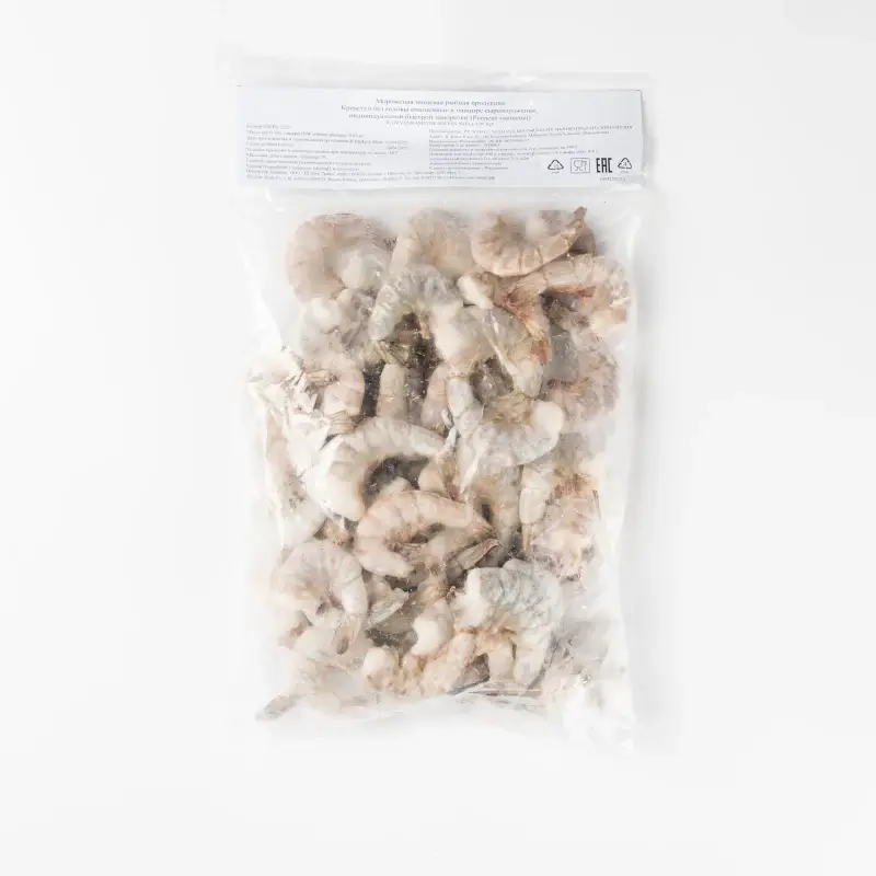 Креветки тигровые свежемороженные без головы. Неочищенные. 46–51 креветка в килограмме.