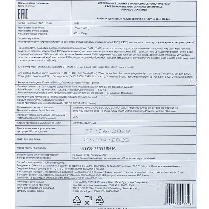 Шарики из рубленой креветки Ваннамей в хрустящей панировке - необычная форма и яркий вкус!