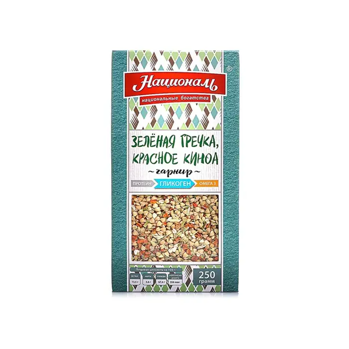 Зеленая гречка, красное киноа Гликоген «Националь», 250 г