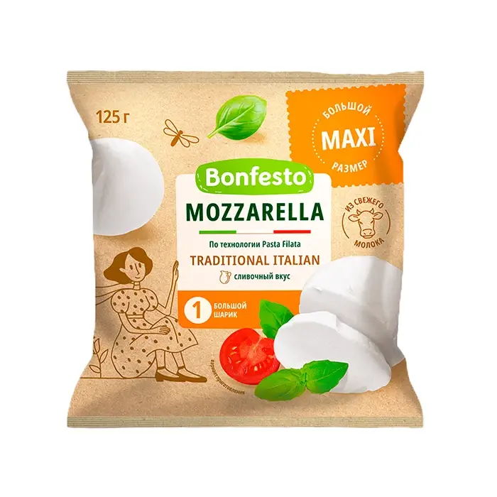 Сыр мягкий моцарелла мини в рассоле 45%, Bonfesto, 125 г, 1 шар (замороженный)