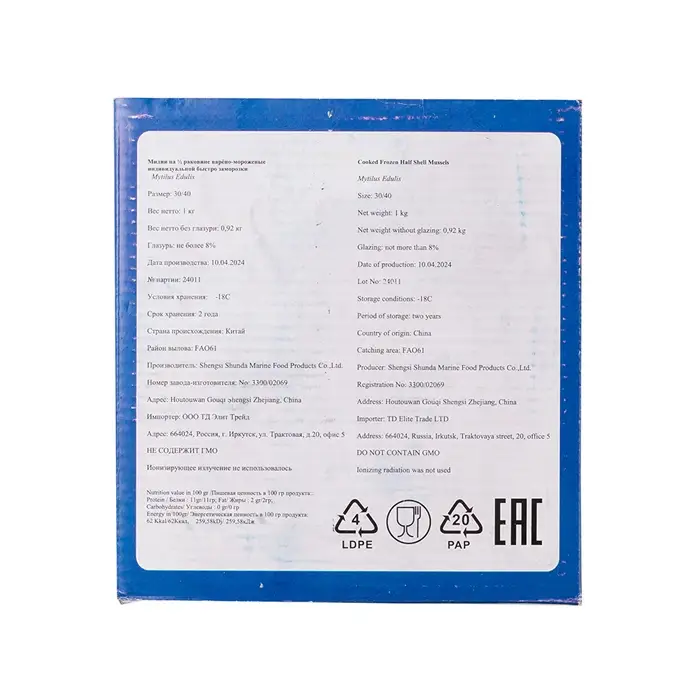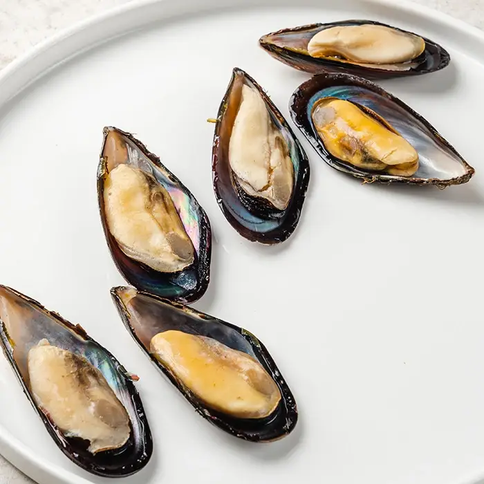 Мидии на половине раковины варено-мороженые 30/40 Zhoushan Rongda, 1 кг