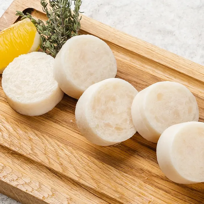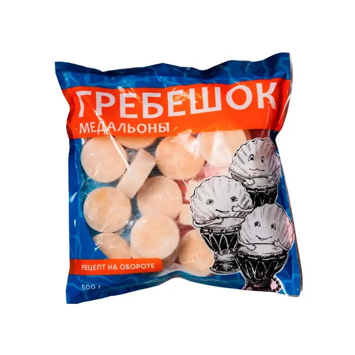 Свежемороженые медальоны из морского гребешка имеют нежную текстуру, сладковатый вкус с ореховыми нотами. Мясо богато витаминами и микроэлементами. Гребешкам требуется минимальная термическая обработка, при длительном воздействии высоких температур мясо становится «резиновым».