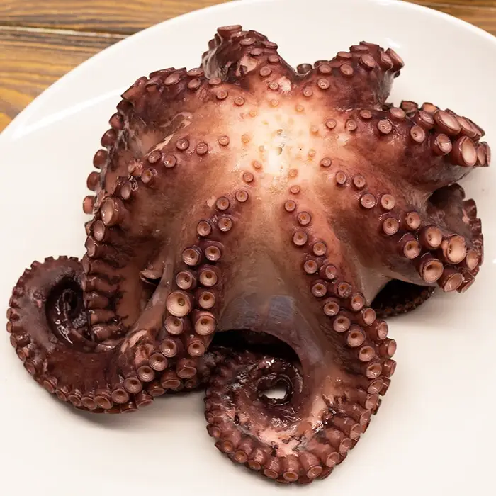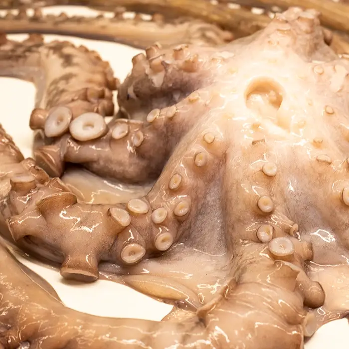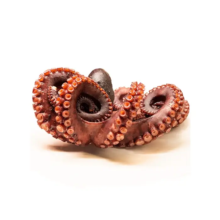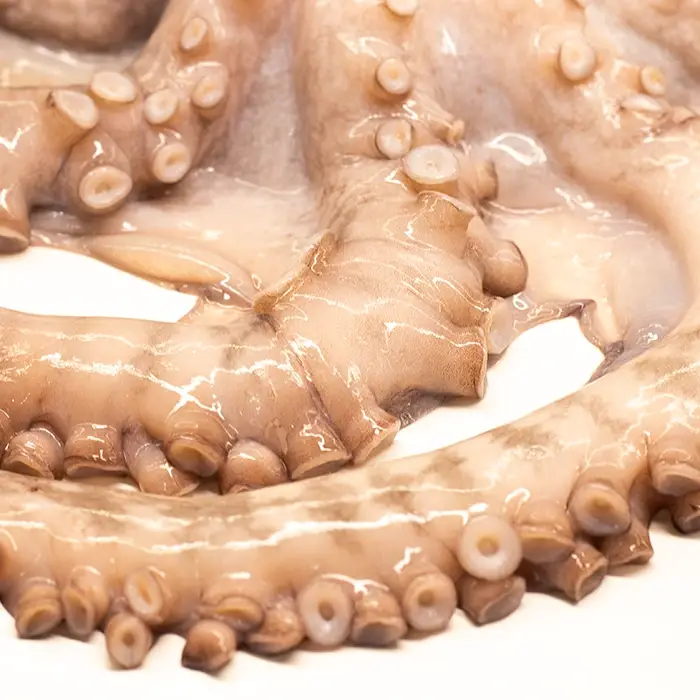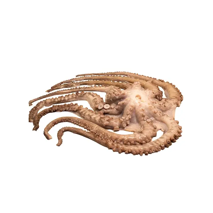 Осьминог очищенный и замороженный имеет плотную крепкую текстуру, нежный сладковатый вкус, напоминающий вкус кальмара. После термической обработки мясо становится сочным и нежным, приобретает кремовый или светло-розовый цвет. Осьминог низкокалорийный и нежирный.