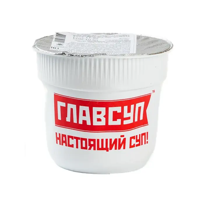 Разогревать можно прямо в упаковочном стаканчике. Рекомендуется подавать с чесночными гренками из черного хлеба и пирожками с картошкой или грибами.