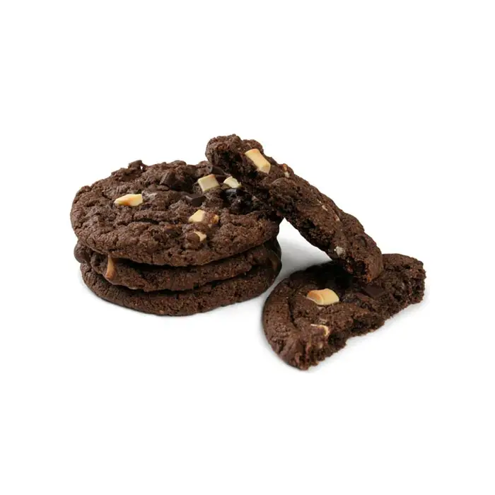 Мука пшеничная высшего сорта (масло рафинированное дезодорированное, в том числе гидрогенизированные, переэтерифицированное), коричневый сахар (сахар, меласса тростниковая), сахар, вода, шоколад темный (сахар, какао тертое, масло какао, эмульгатор: соевый лецитин), шоколад молочный (сахар, сухое цельное молоко, масло какао, какао тертое, сыворотка молочная сухая, эмульгатор: соевый лецитин, ароматизатор натуральный), шоколад белый (сахар, сухое цельное молоко, масло какао, сухое обезжиренное молоко, эмульгатор: соевый лецитин, ароматизатор натуральный.