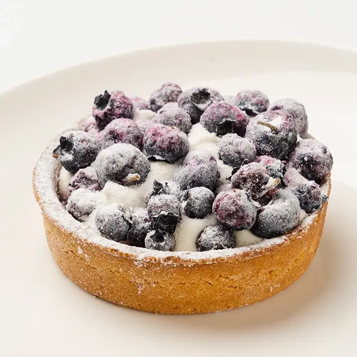 Голубика свежемороженая, мука пшеничная высший сорт, маргарин, сахар, шоколадная белая масса: сахор, масло какао, сухое цельное молоко, эмульгатор, натуральный ароматизатор ваниль; молоко питеьвое ультрапастеризованное, малина свежемороженая, крем на растительных маслах для взбивания, крем сливочный ультрапастеризованный, пудра декоративная кондитерская, меланж пастеризованный, сливки замороженные, желток пастеризованный, мука миндальная, комплексная пищевая добавка (загуститель), крахмал кукурузный, стабилизаторы: карбоксиметилцеллюлоза, ксантановая камедь; приправа из цитрусовых плодов.