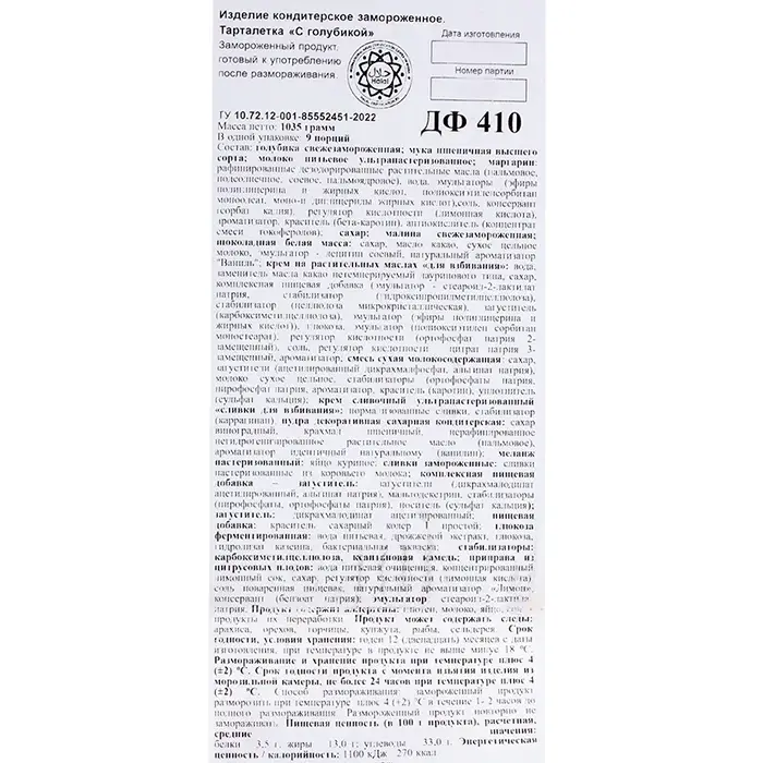 Тарталетки с голубикой "Десерт Фентези", 1,035 кг/9 порций