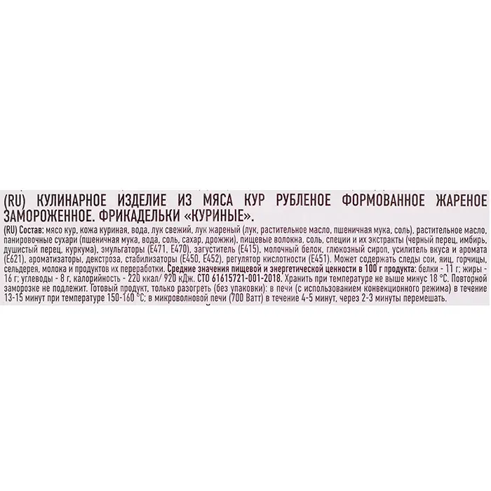 Мясо бедра цыпленка-бройлера,филе грудки цыпленка-бройлера, вода,клетчатка пшеничная,соль,глюкоза ферментированная, перец черный молотый, мальтодекстрин.