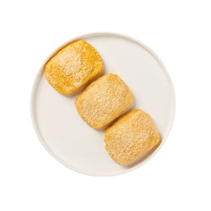 Филе грудки кур замороженное, вода питьевая, мука пшеничная, продукт плавленый с сыром [вода питьевая, заменитель молочного жира (рафинированные дезодорированные растительные масла в модифицированном переэтерифицированном виде (подсолнечное, рапсовое)) антиокислитель Е306), сыр полутвердый (молоко пастеризованное, молокосвертывающий ферментный препарат животного происхождения (сычужный фермент), уплотнитель Е509, консервант E251, мезофильные молочные культуры), концентрат молочного белка, комплексная пищевая добавка (загустители (Е1422, Е1420), эмульгатор Е452(i), эмульгирующая соль Е339(ii), агенты желирующие (Е407, Е508), фруктоза, сыворотка молочная сухая, соль поваренная пищевая, ароматизаторы пищевые, консервант сорбат калия Е202], изделие колбасное ветчинное из мяса птицы ветчина [мясо кур замороженное, вода питьевая, нитритно- посолочная смесь (соль, фиксатор окраски нитрит натрия), крахмал картофельный, специи молотые и экстракты специй (чеснок, перец черный, перец белый, перец душистый, тмин, кориандр, мускат), регуляторы кислотности (Е450(i), Е451(i)), загустители (ксантановая камедь, гуаровая камедь), волокна пищевые (бамбуковые), продукт переработки коллагенсодержащего сырья (белок животный говяжий сухой), агент желирующий хлорид калия, усилитель вкуса и аромата Е621, ароматизатор, краситель кармины], масло растительное подсолнечное рафинированное дезодорированное, кожа тушек кур замороженная, соль, крахмал (картофельный, гороховый), белок соевый, волокна пищевые (клетчатка пшеничная), регуляторы кислотности (Е500(i), глюконат натрия), дрожжи, антиокислитель аскорбиновая кислота, загустители (метилцеллюлоза, Е466, Е1422, гуаровая камедь) куркума, краситель экстракт паприки, ароматизаторы.