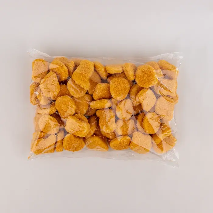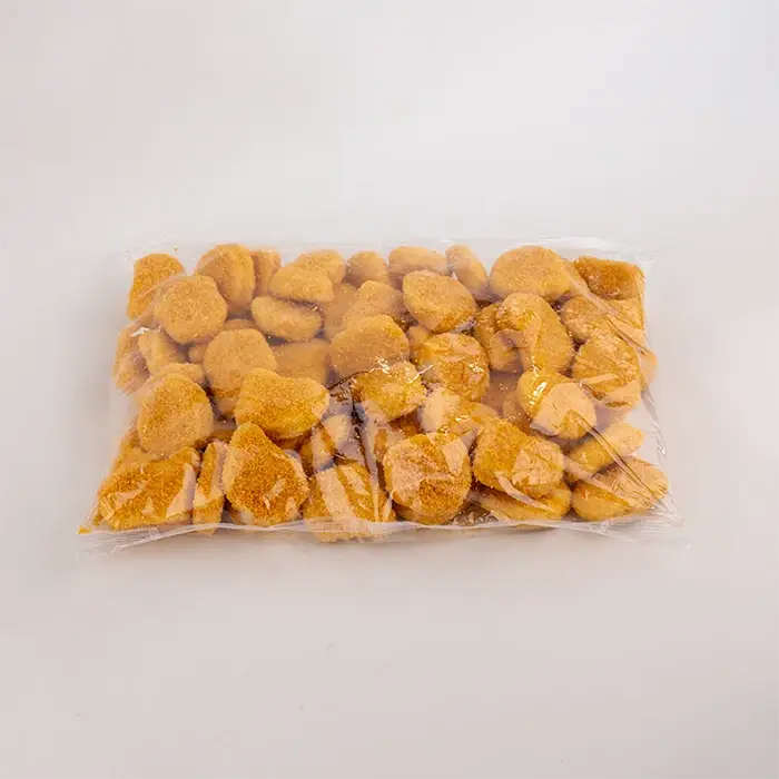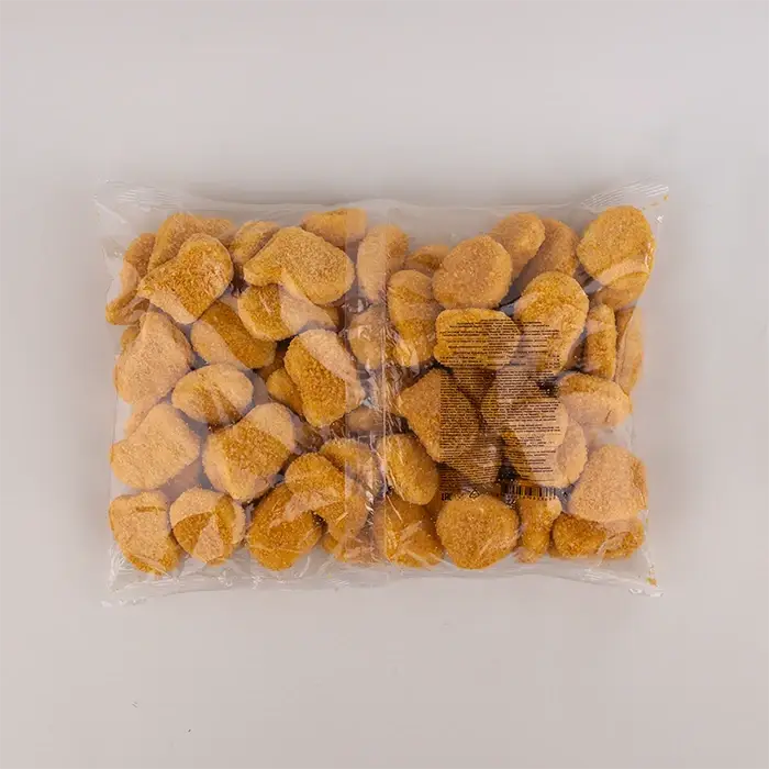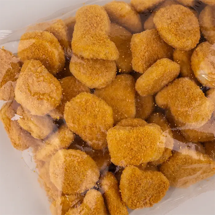 Аппетитные наггетсы в золотистой панировке имеют нежную сочную текстуру, насыщенный куриный вкус с легкой солоноватостью и пряный аромат.