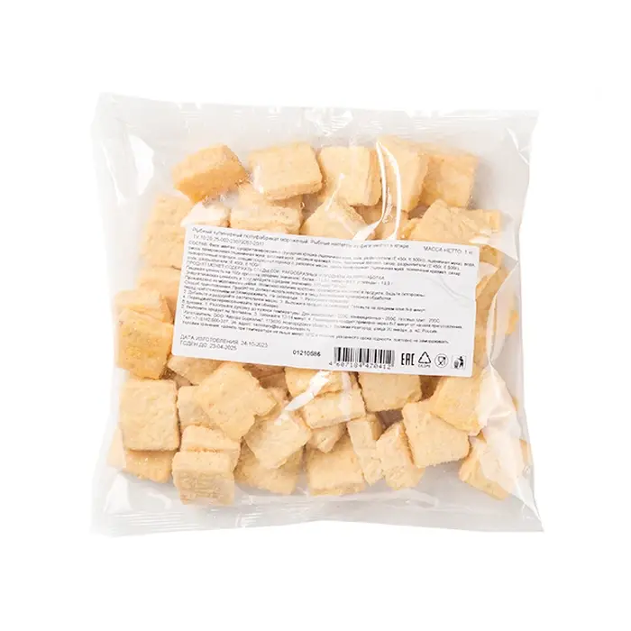 Наггетсы в панировке из сухарей, муки, соли и специй приготовлены из филе минтая без добавления красителей, усилителей вкуса, имеют приятный нейтральный вкус.