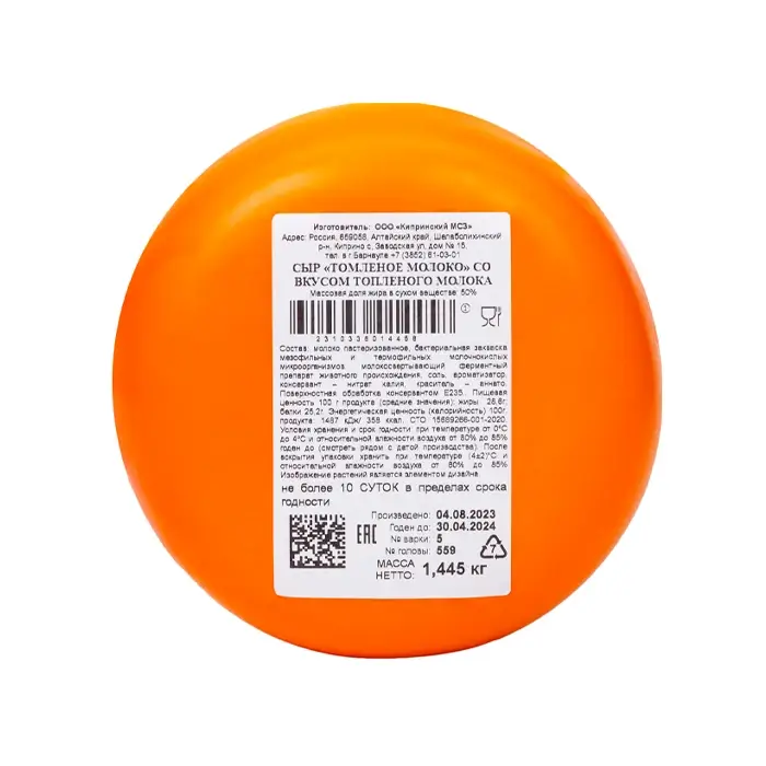 Сыр полутвердый Томленое молоко 50% «Киприно», круг, 1,5 кг