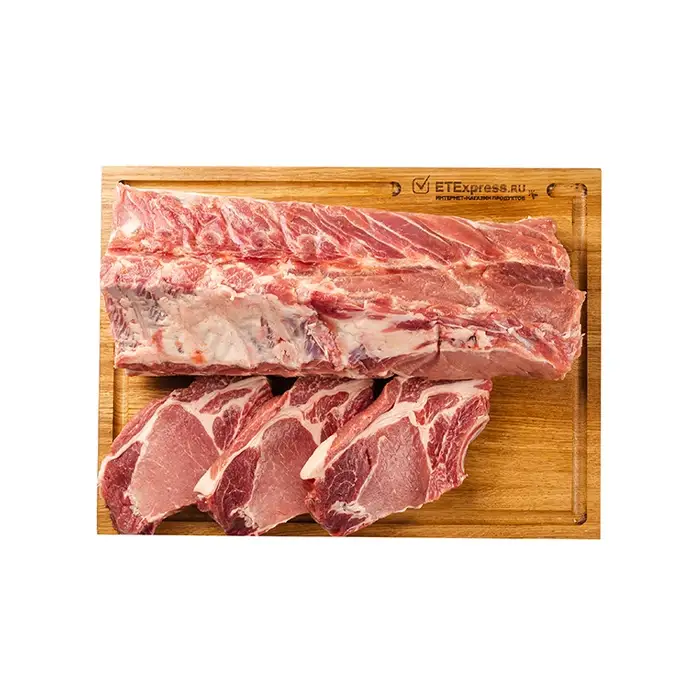 Свиная корейка на кости имеет нежную, мягкую текстуру и насыщенный аромат. Мясо питательное, сытное, легкоусвояемое и богатое витаминами.