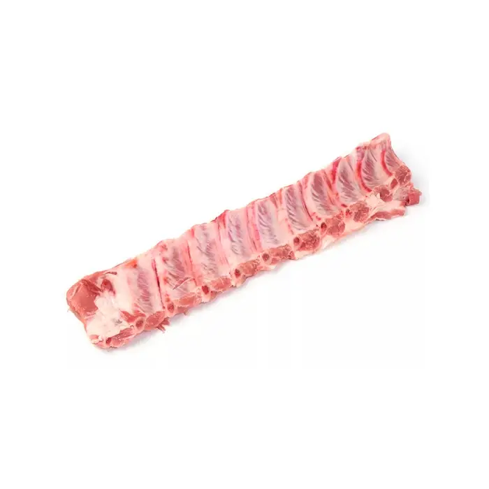 Свиные ребра имеют плотную структуру, равномерный розовый цвет, нежный мясной аромат и жировую прослойку, что делает их сочными и мягкими при приготовлении.