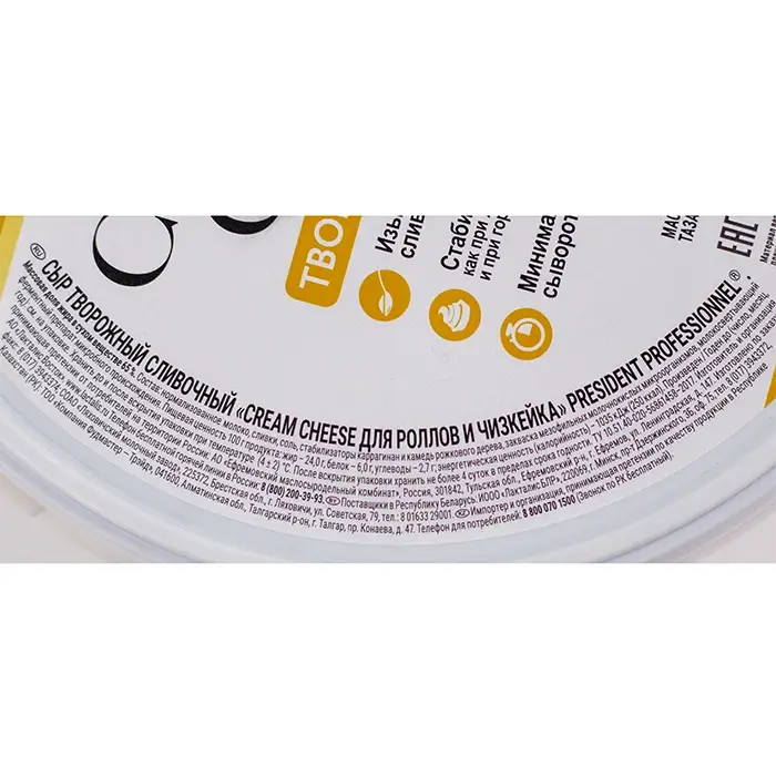 Сыр творожный сливочный 65% Cream Cheese President, 2,2 кг