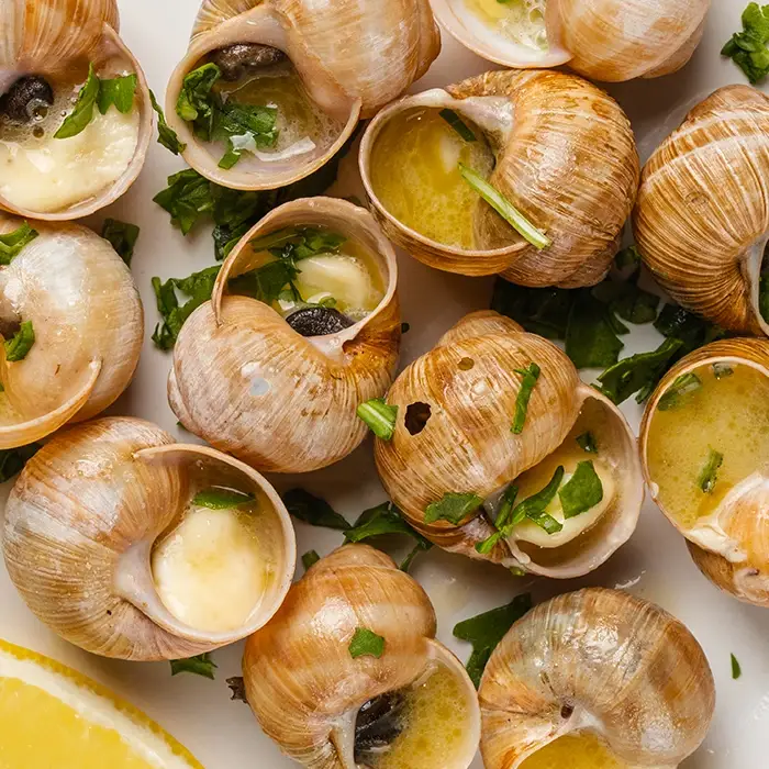 Мясо улиток, сливочное масло, сыр, специи, соль.