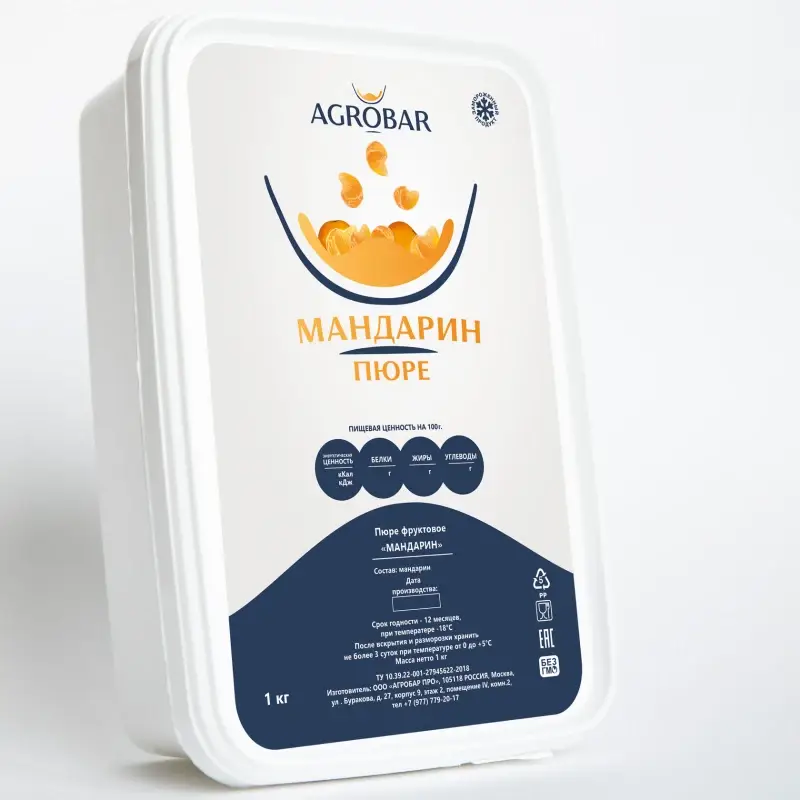 Пюре замороженное Мандарин без сахара AGROBAR, 1 кг