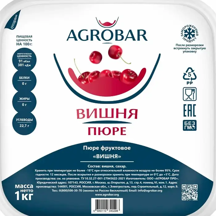 Пюре замороженное Вишня, 1 кг