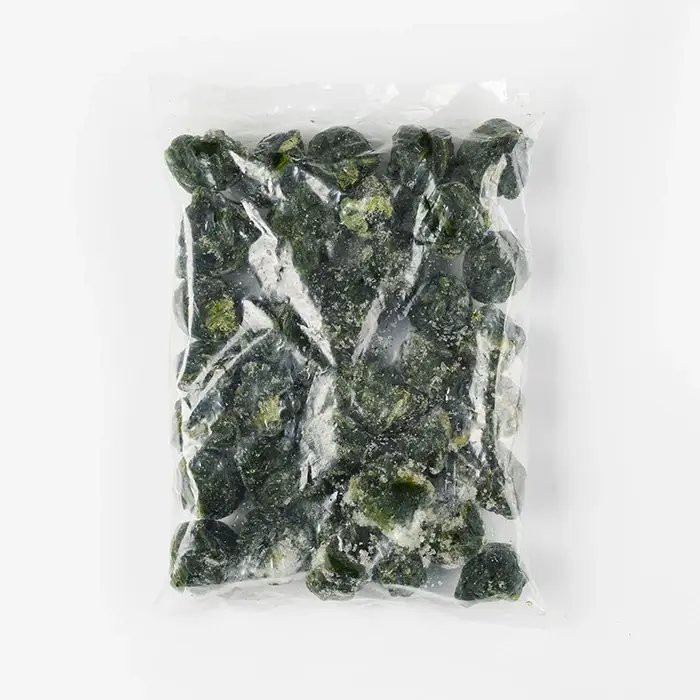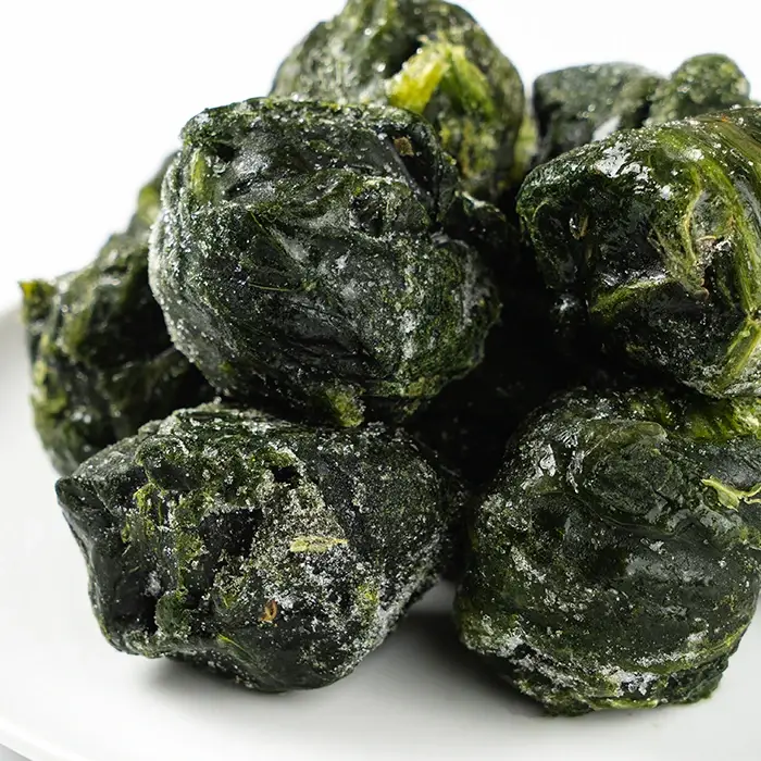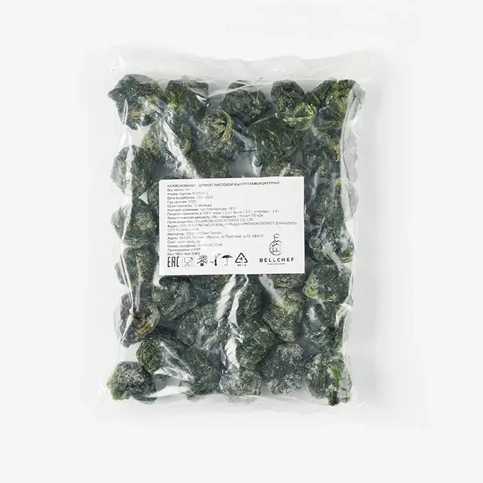 Листья шпината, скрученные в комочки и замороженные. Сохраняют все свойства и вкусовые качества свежего шпината за счет технологии шоковой заморозки!